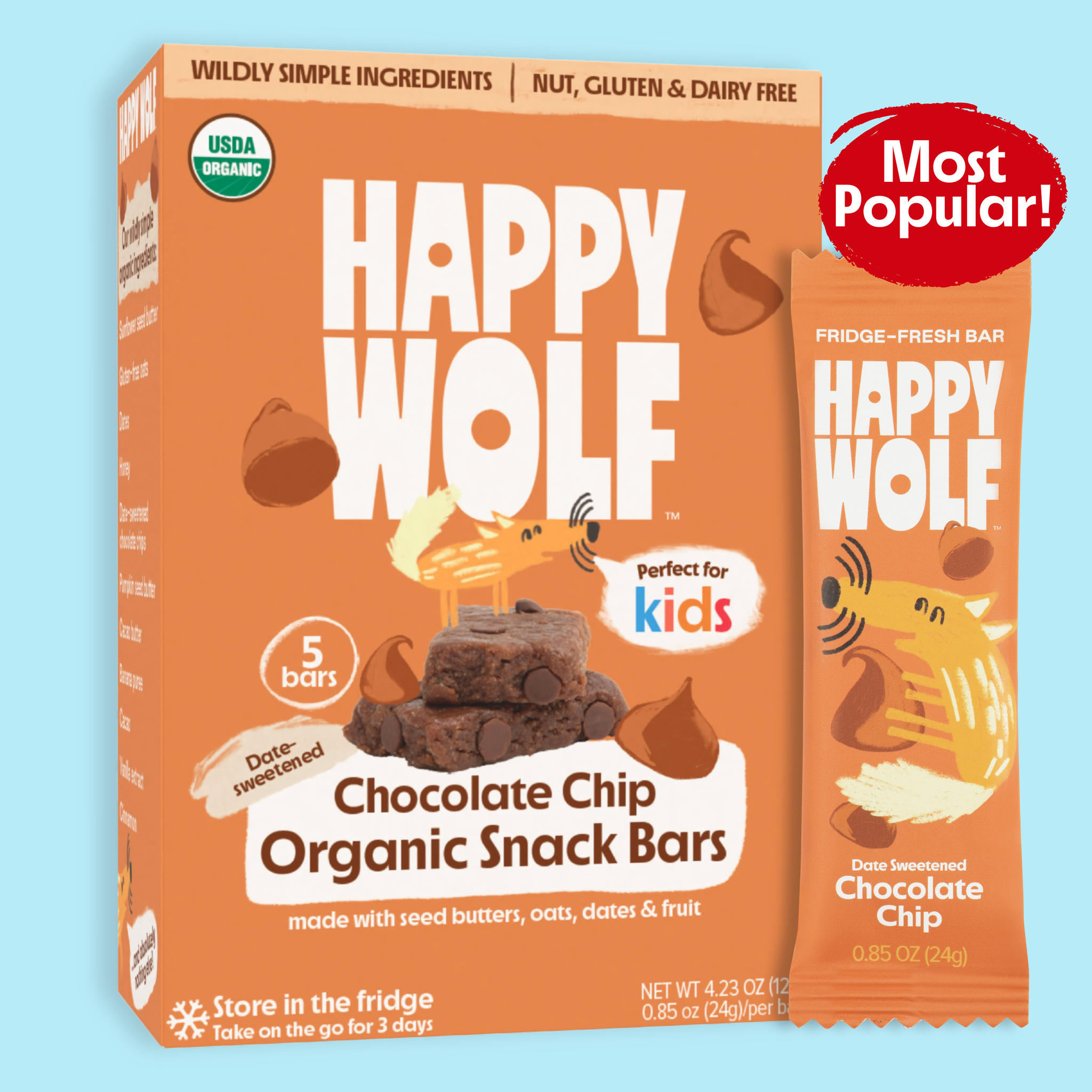 We only use ingredients you’d find in your kitchen: a base of sunflower seed butter, gluten-free oats and pureed + dried fruits, plus a touch of real-food sweetness from dates and honey. We believe that kids don’t need ultra-processed nutritional powders — just whole food. If your kid can’t pronounce it, you can’t find it on our labels.